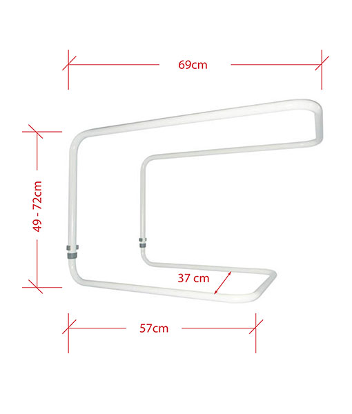 Made from lightweight, powder-coated aluminium, the cradle is height adjustable to suit different mattresses and individual needs. It can be positioned at the side or foot of the bed and secures in place by sliding under the mattress.