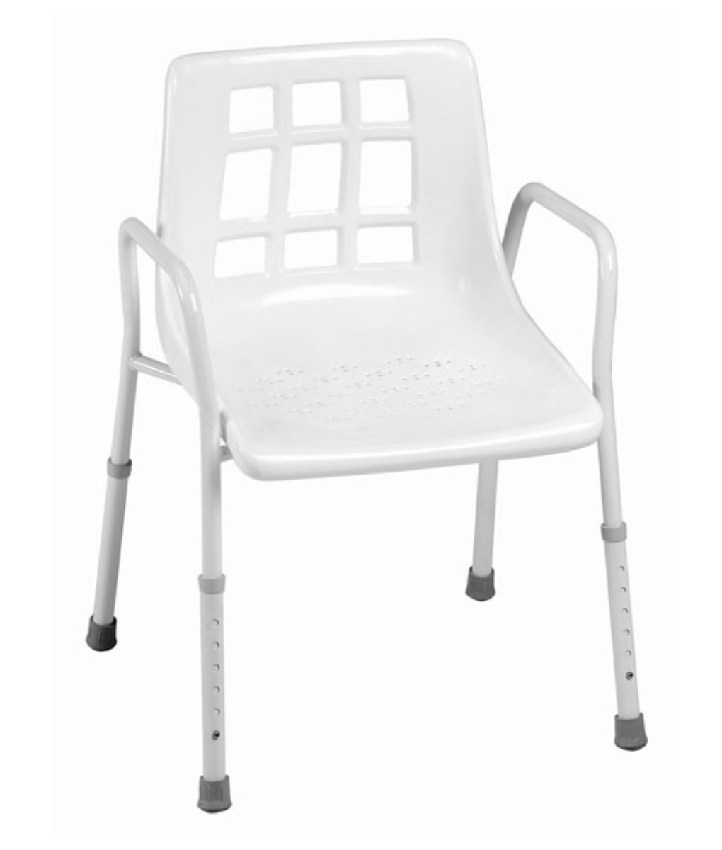he Homecraft Standard Shower Chair offers a stable, seated surface for those who can’t stand for long periods or who are at risk of falls while showering. The durable aluminium frame is lightweight, easy to move and corrosion-resistant, suitable for wet bathroom conditions.