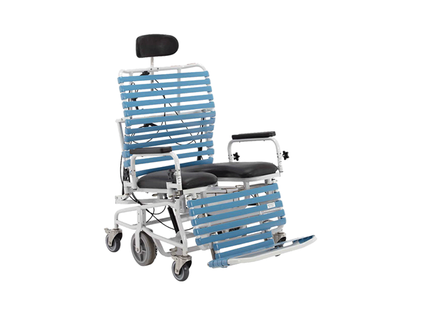 Comfort tension seating and a height-adjustable headrest enhance comfort and support. Tilt-in-space and backrest recline functions enable safer positioning for washing and improved access to the abdominal and perineal areas. The curved backrest is designed to accommodate the gluteal shelf for improved comfort.