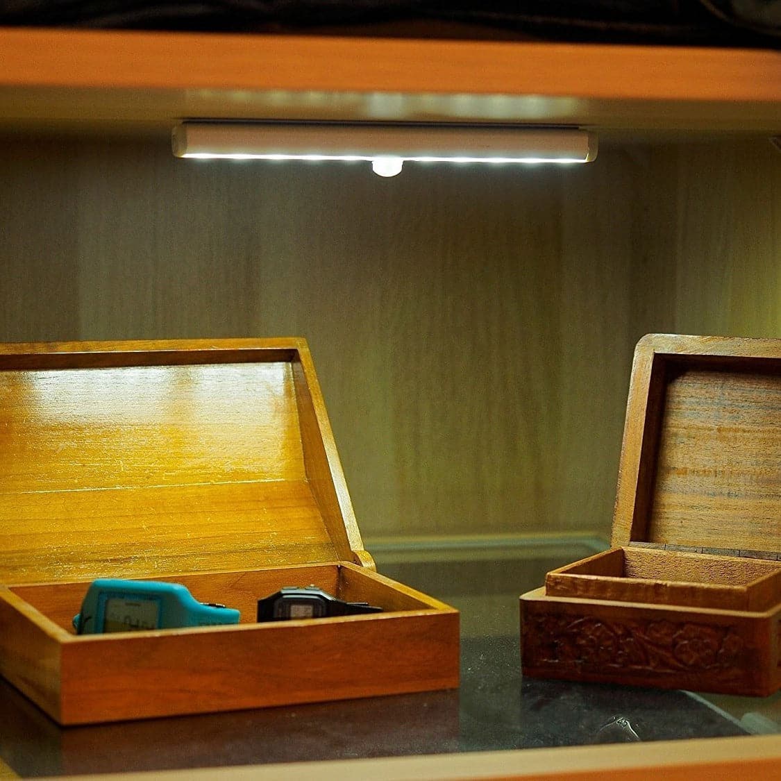 Fitted with 10 warm-white LEDs, the strip delivers soft, effective lighting. A magnetic adhesive strip allows for simple mounting and removal from any surface, making it easy to reposition as needed. The light is powered by 4 x AAA batteries (included), offering a cordless, portable solution suited to any indoor setting.