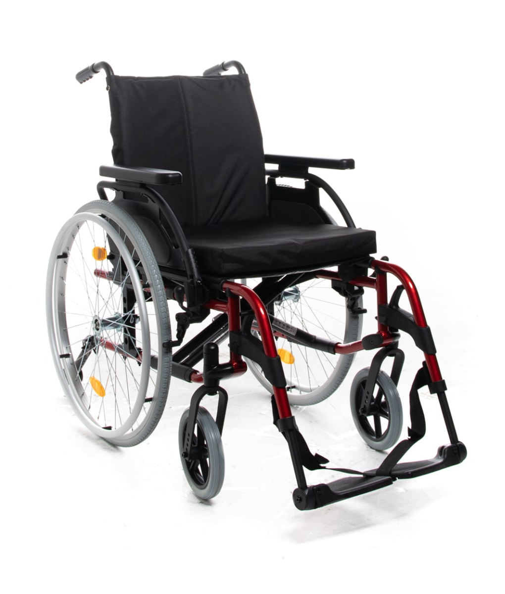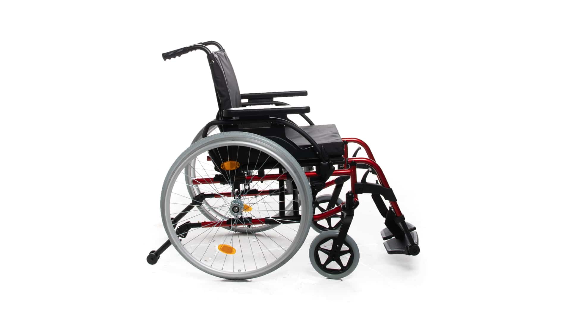 Finished in a modern red frame with 24” quick-release solid rear wheels, it offers a clean look and excellent manoeuvrability.