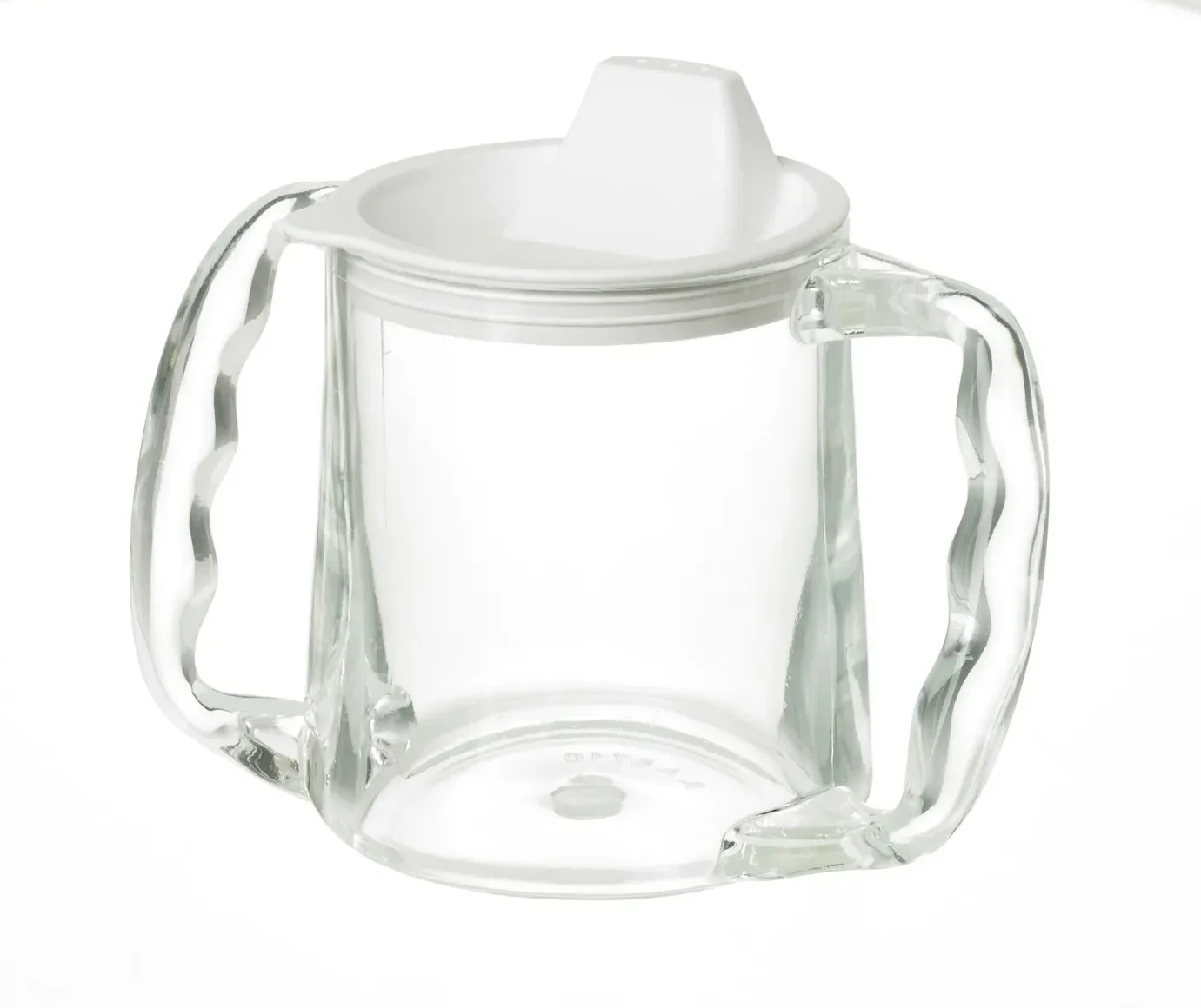 The clear body allows visibility of fluid level, and the mug comes with a spouted lid, ideal for individuals who cannot tilt their head back when drinking, the mug enables controlled sipping without neck strain.
