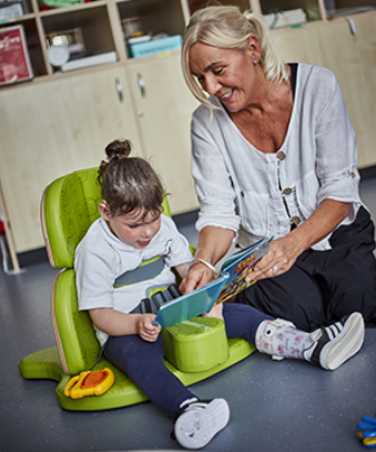 In addition, the Corner Seat can be safely connected to the Jenx Nursery Table with small touch and close straps, enabling users to have greater interaction with peers and enjoy a variety of activities, including working and playing with other children across the table.