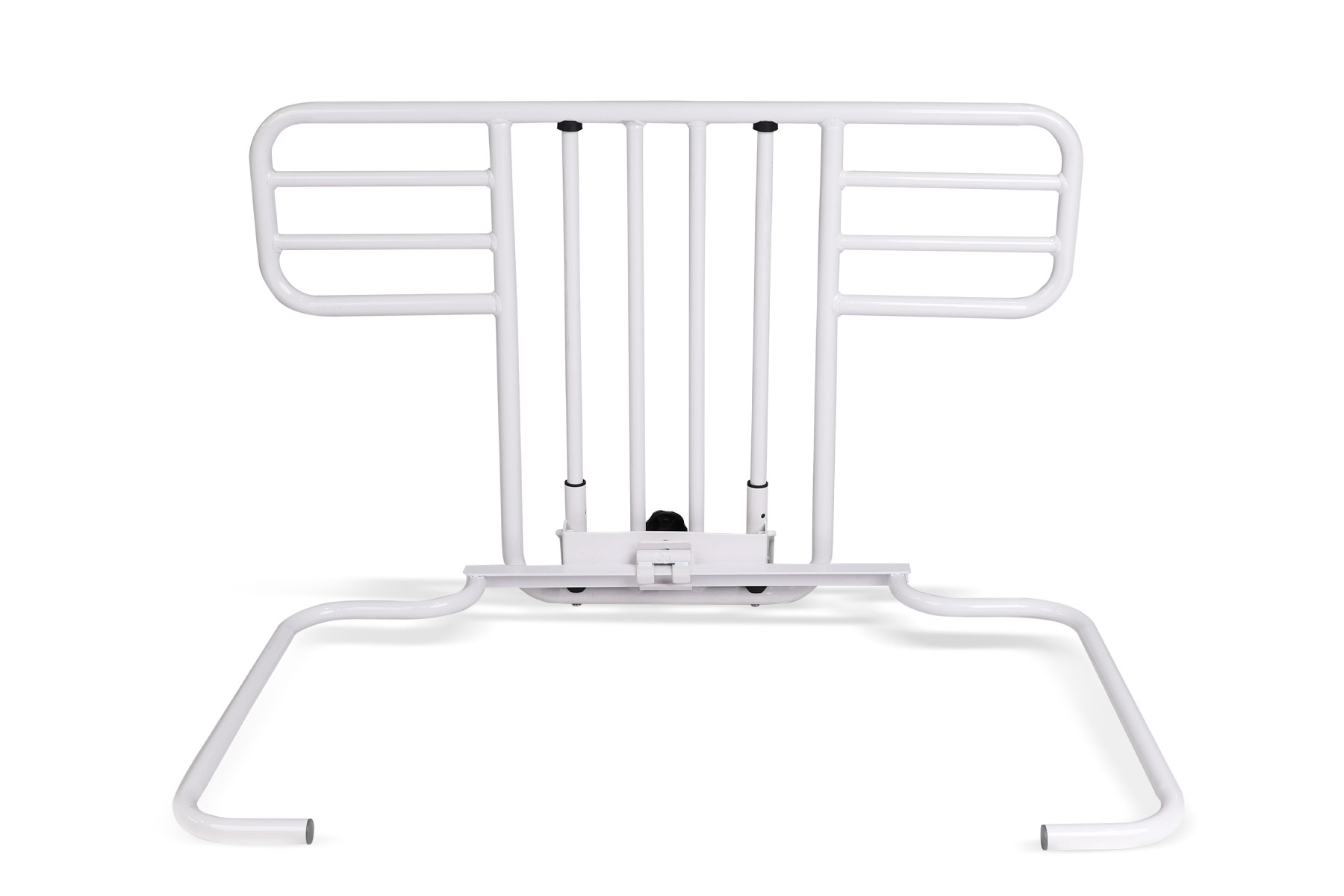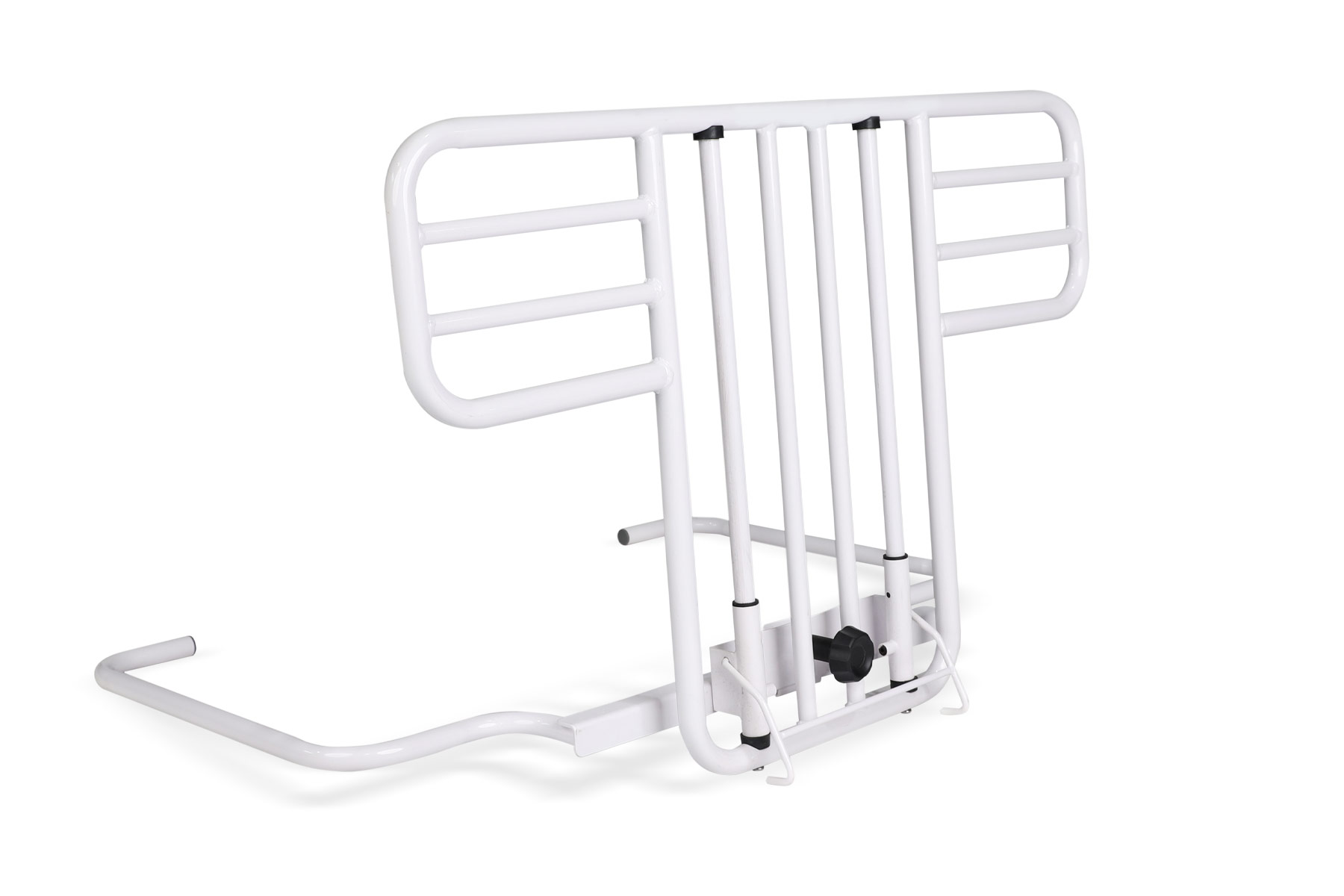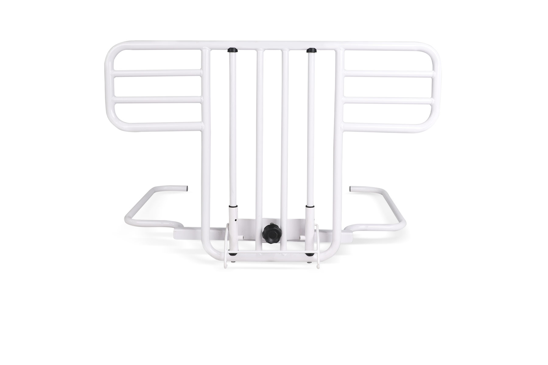 The rail drops down easily when not in use, improving access to the bed. Its powder-coated steel frame is strong, easy to clean, and designed for long-term use in home or care environments.