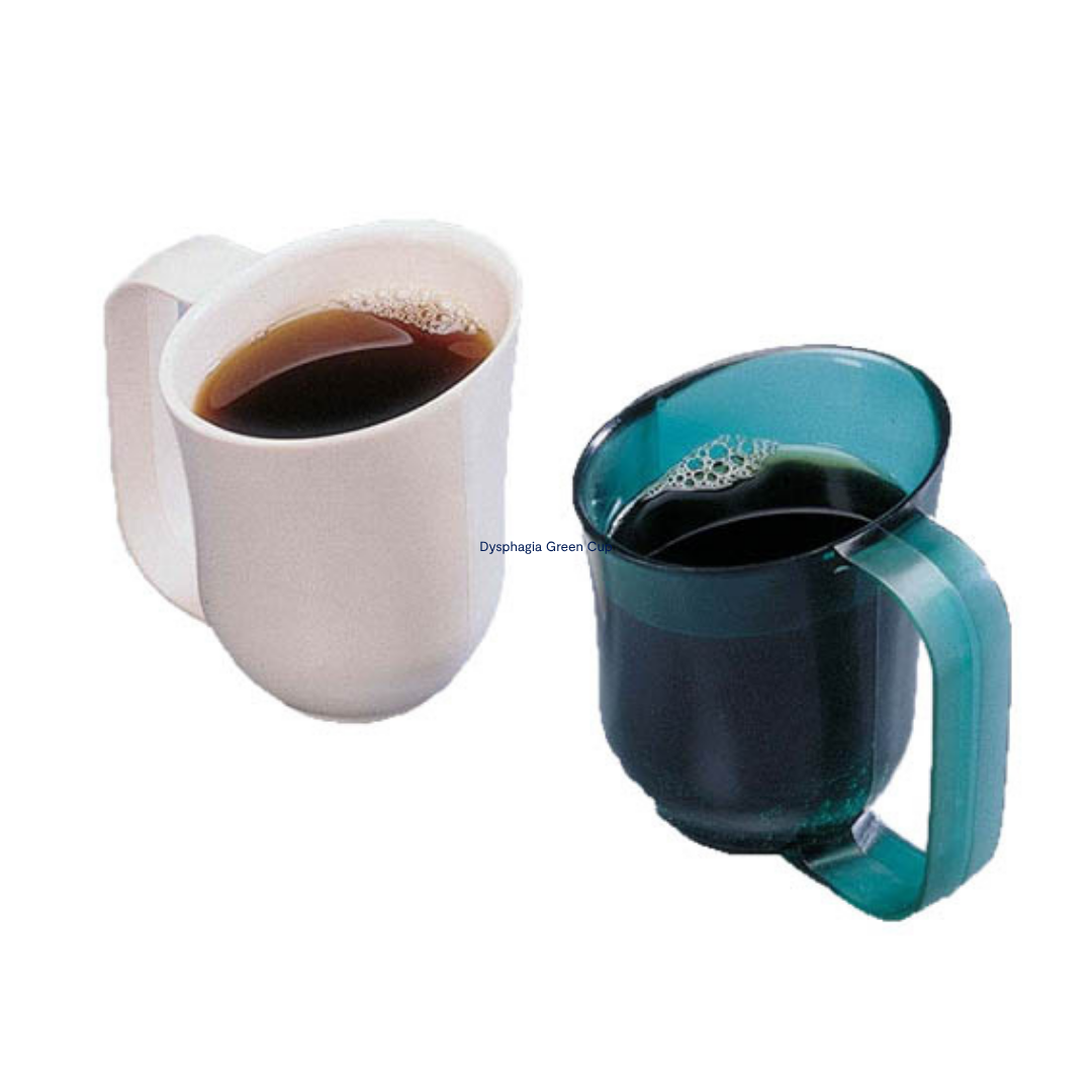 The Homecraft Dysphagia Green Cup is designed to help individuals with dysphagia drink more safely and independently. Its angled body supports neutral head posture, while the contoured lip regulates flow to prevent gulping and reduce the risk of choking.