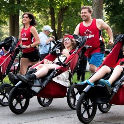 - Red stroller with sun canopy
