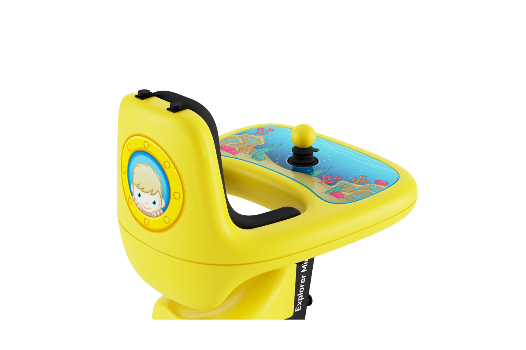 At the centre is a midline proportional joystick with a bright yellow ball handle, encouraging visual tracking, grasp and bilateral hand use. The intuitive interface offers multisensory input to support upper limb development in a playful, engaging way.