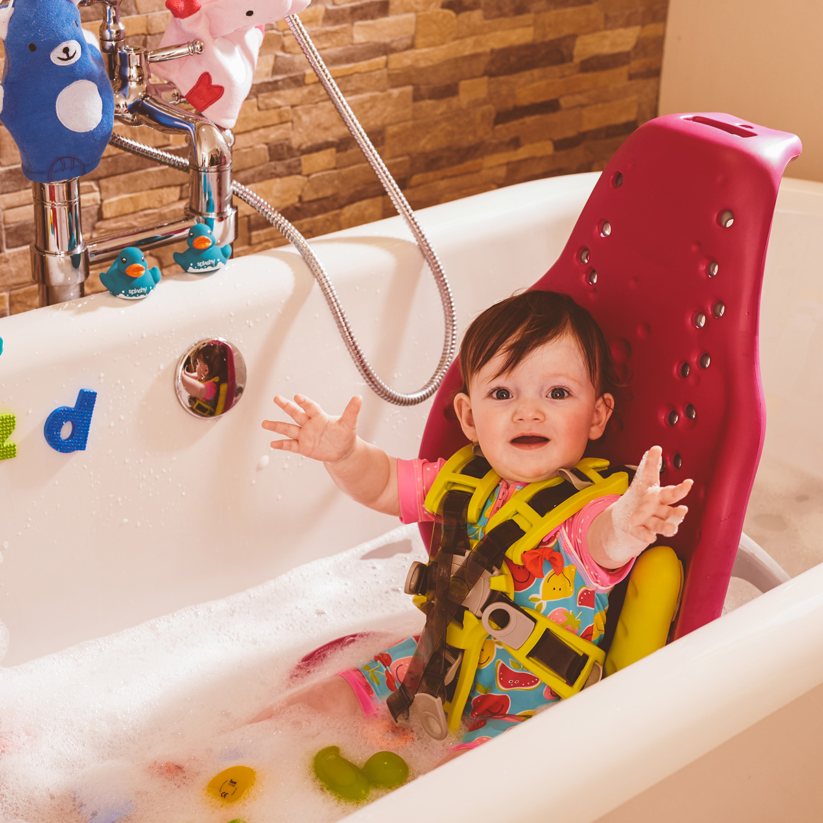 - A portable and lightweight support solution for bath time or messy games