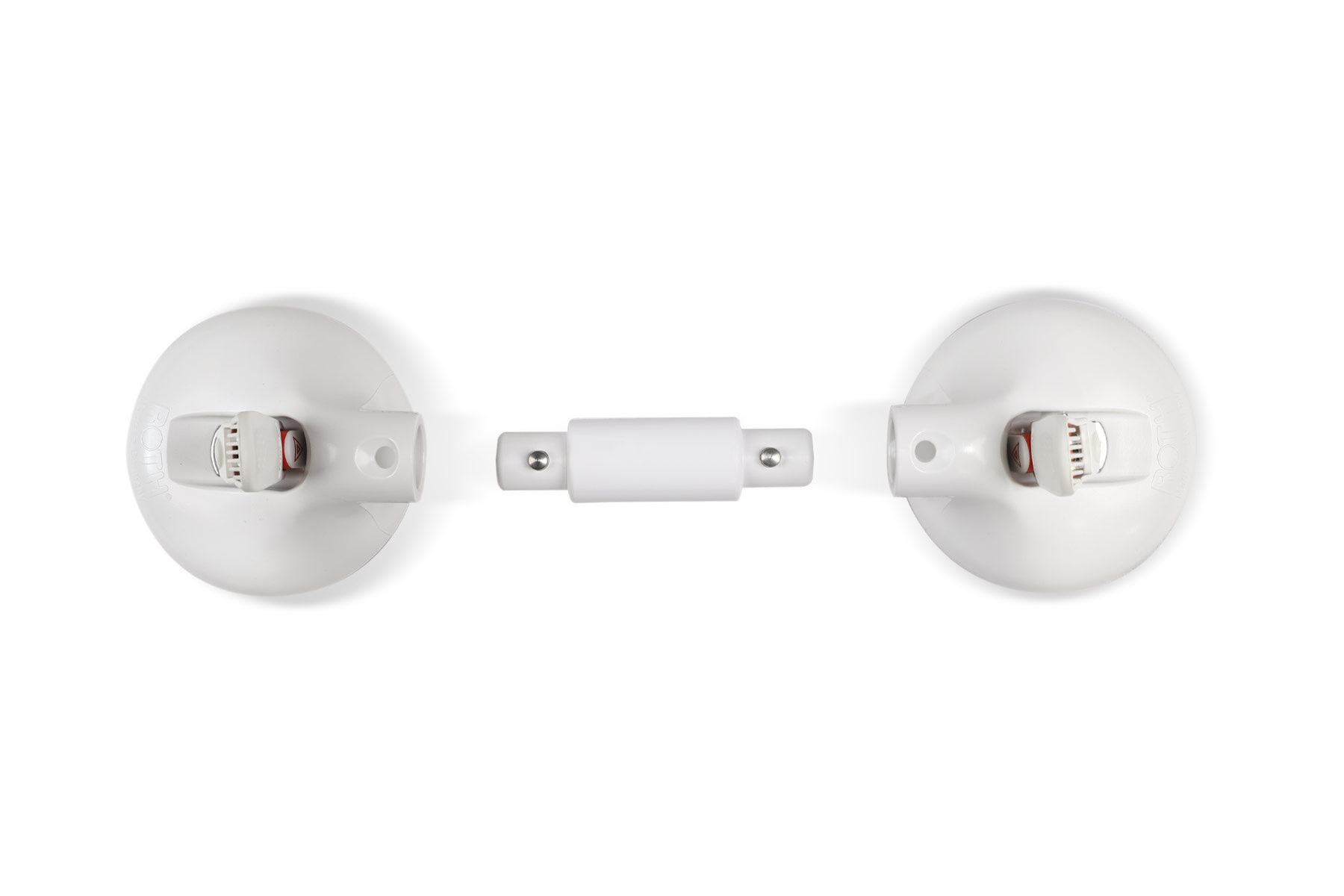 The rail is equipped with a unique lever system that allows easy installation. Integrated safety indicators show suction strength and alert users if the rail needs to be re-secured. The ergonomic handle offers a reliable grip, even in wet environments. It’s made from high-quality materials and built in Germany to testing safety standards.