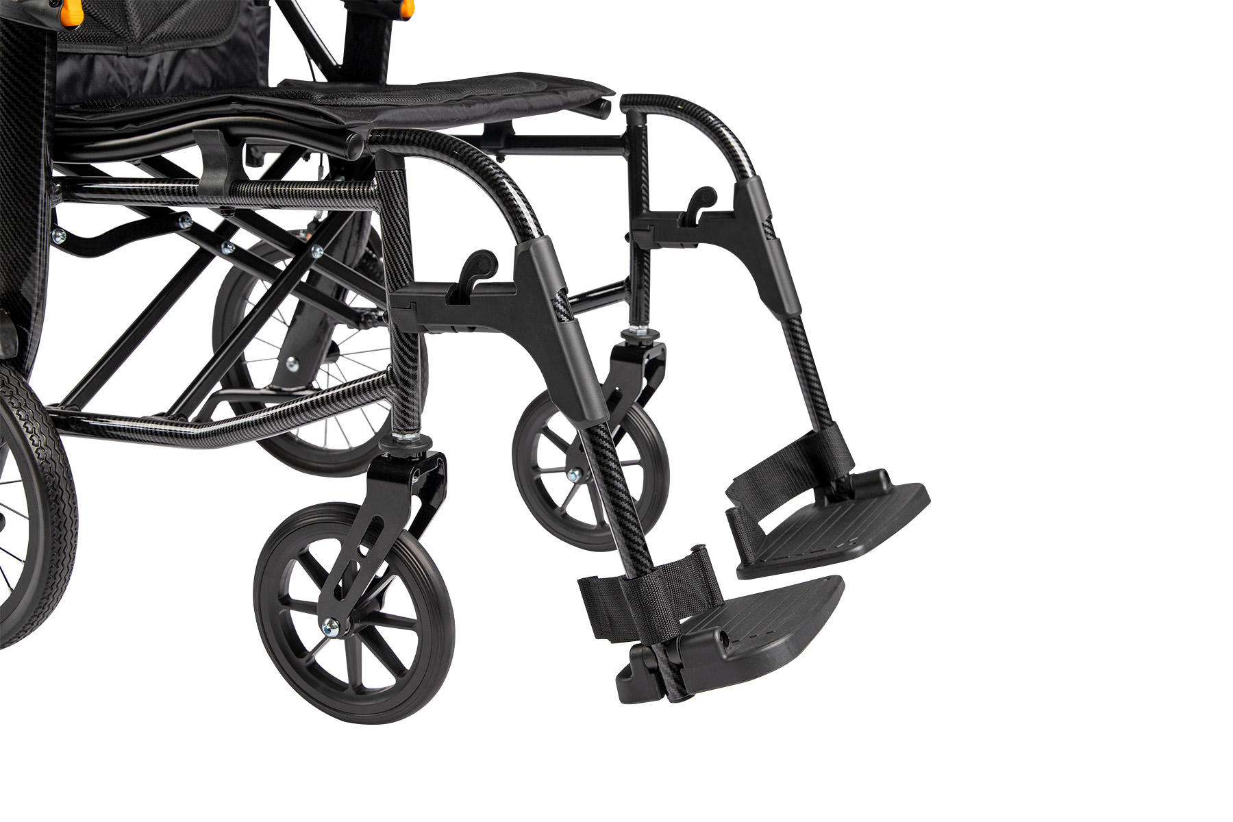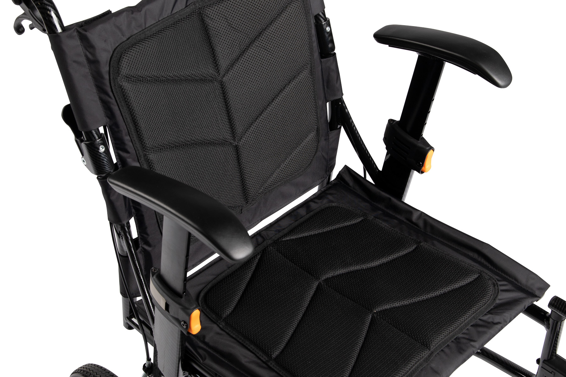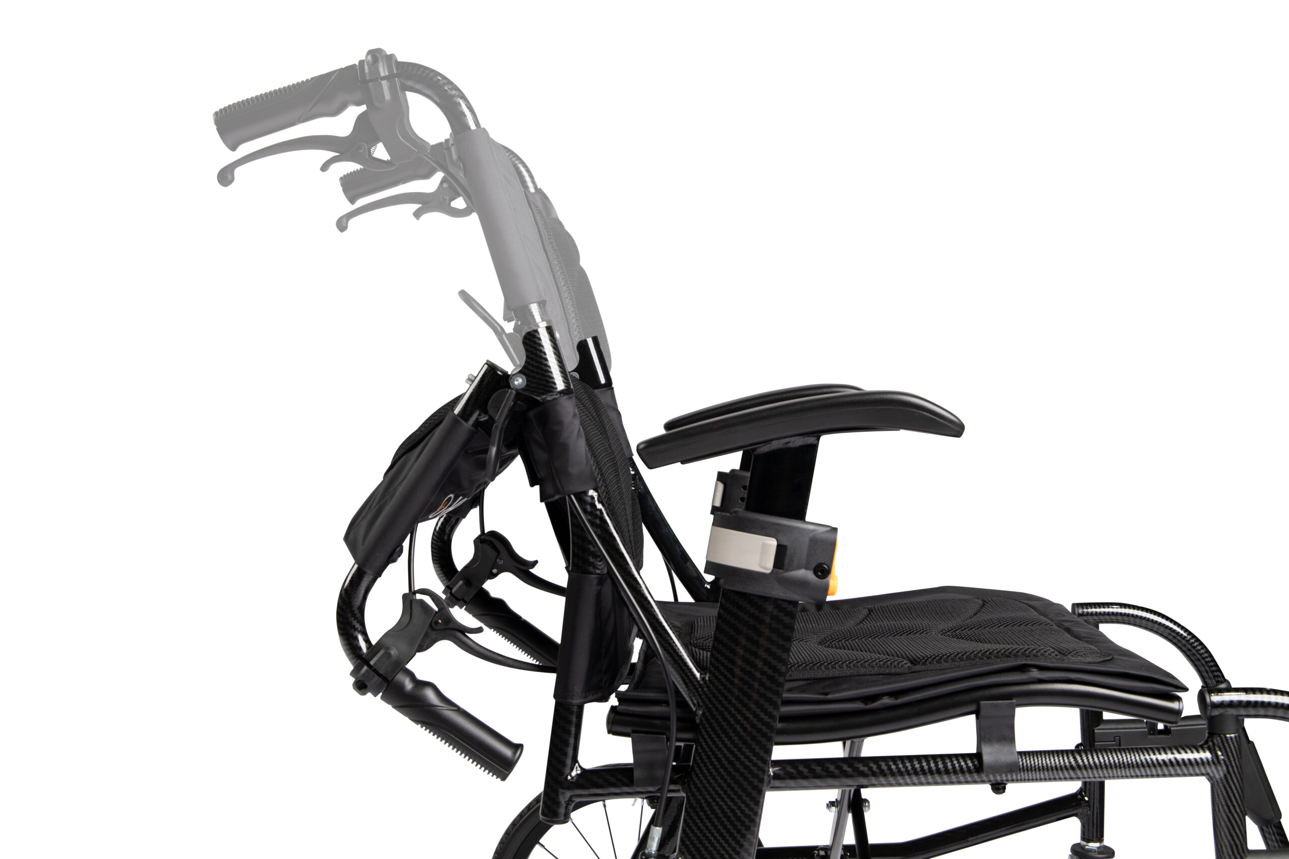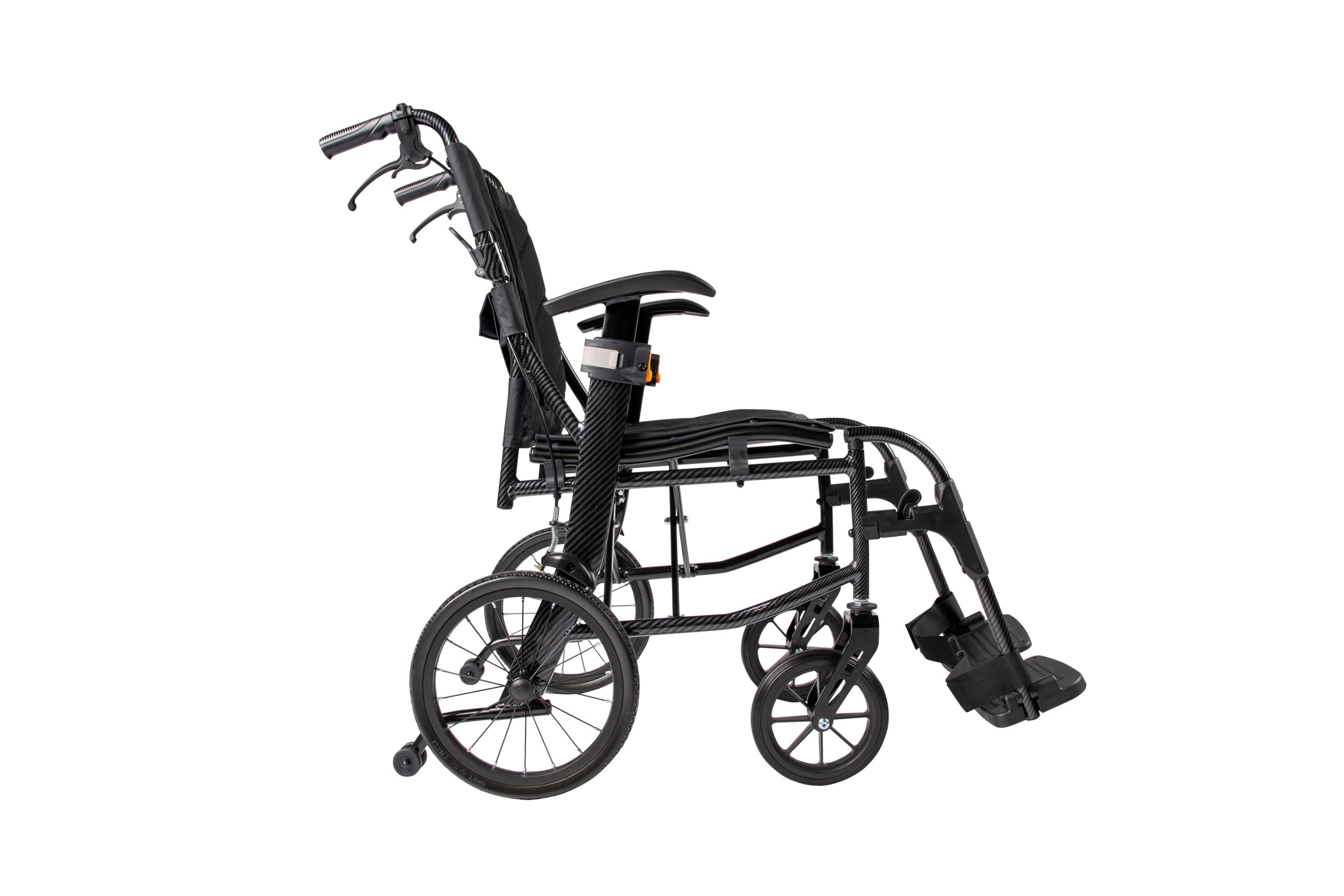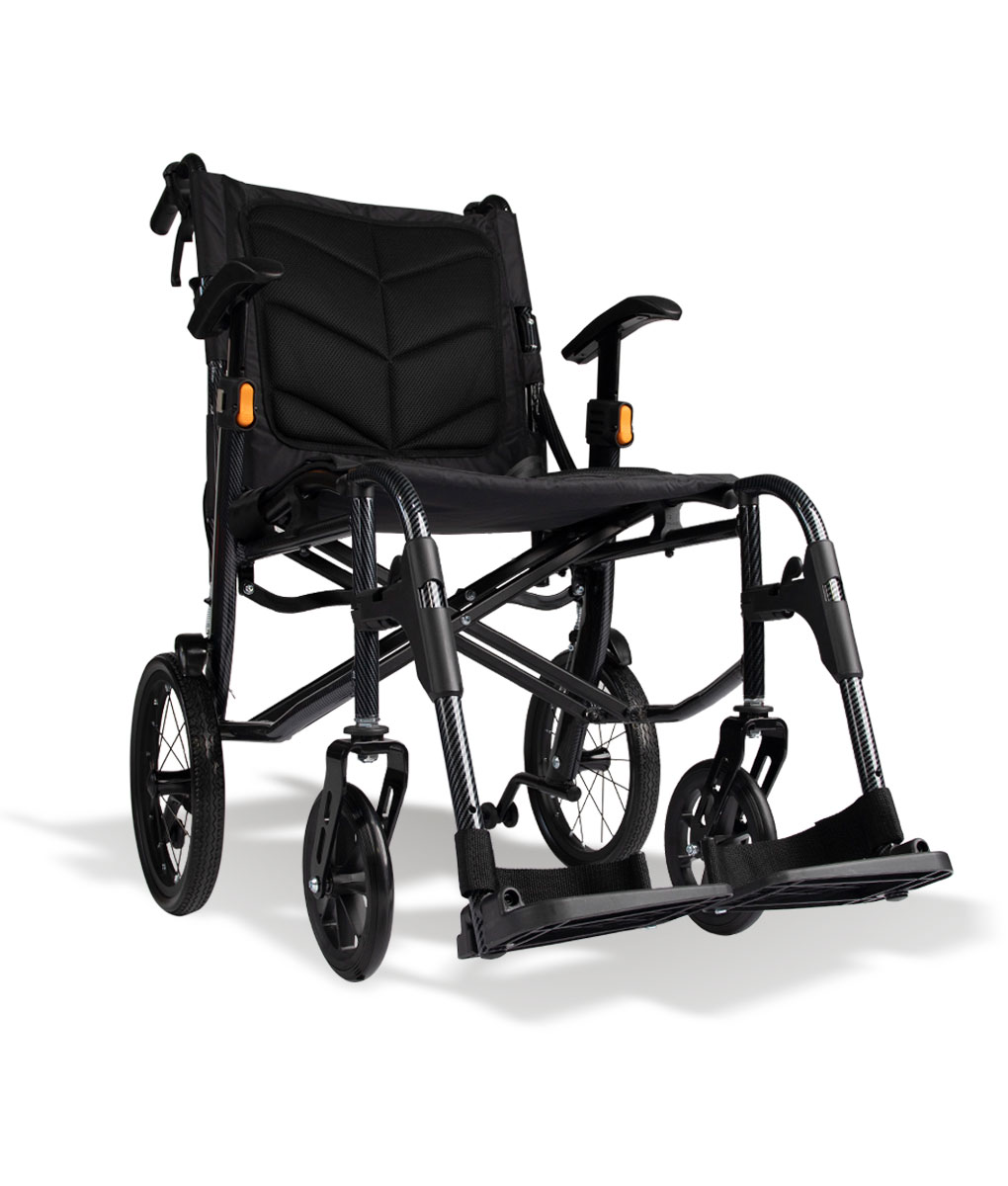 Weighing just 8.9 kg, the Active Ultra Lite features an aluminium frame with a carbon-textured finish, ensuring durability without compromising on portability. Its half-folding backrest and removable leg rests facilitate convenient storage and travel.