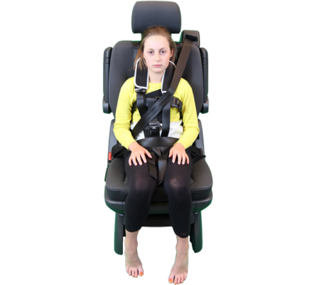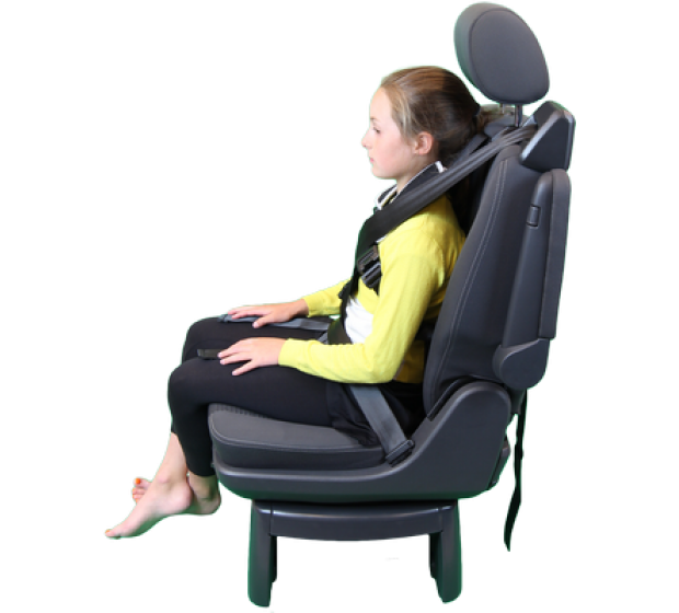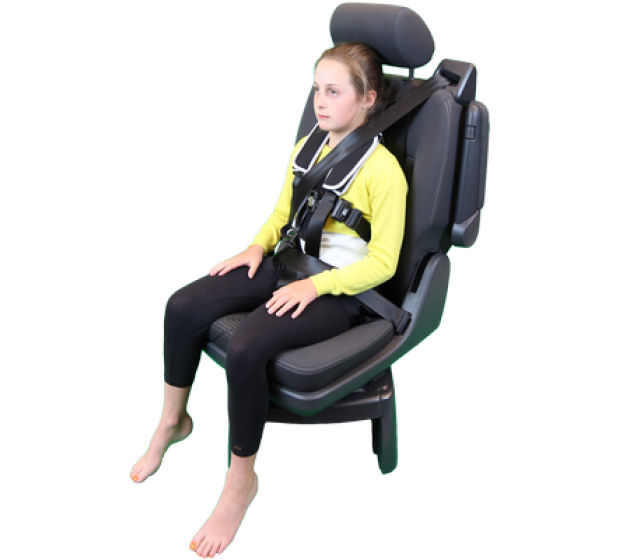 The Houdini 28 harness can also be used to offer postural support and assist in seating the occupant in an upright position for persons with physical disabilities. The harness attaches vertically around the vehicle seat and access is required between the seat back and cushion. The vehicle safety belt must always be worn over the top of the harness for safety. A safety webbing slicer is included with every harness and should be kept in the vehicle as a precaution. It is recommended to carry out a safety and risk assessment before using the harness.