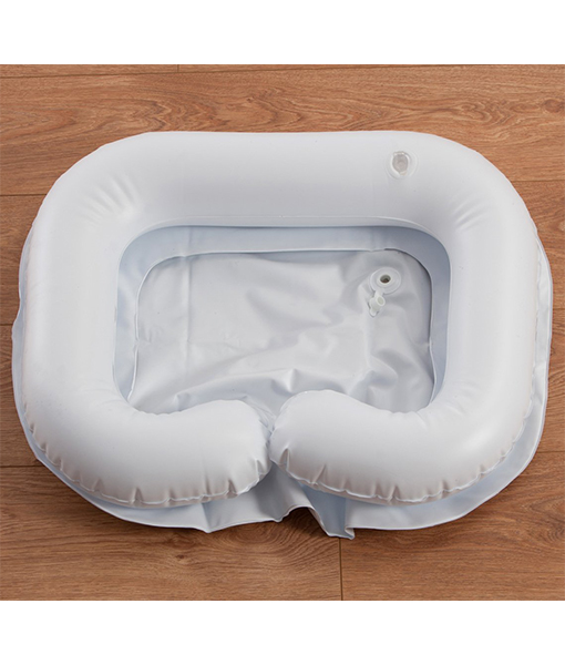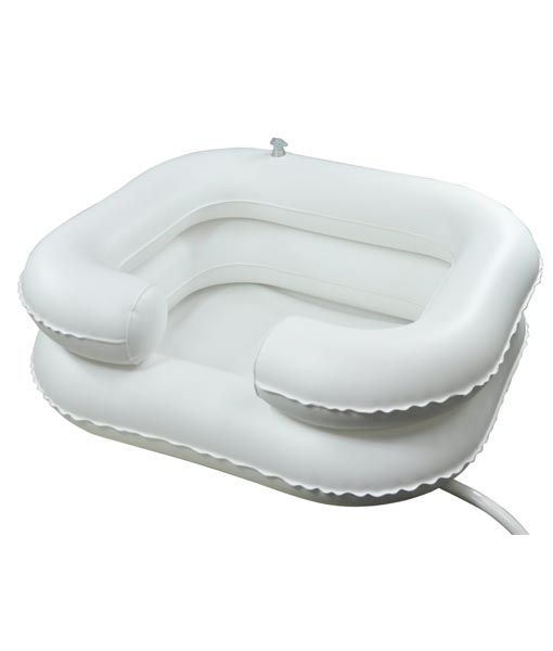 The Inflatable Hair Washing Basin is a portable aid for those who are unable to access standard bathing facilities. It inflates into a shallow basin that gently supports the head and neck, allowing carers to wash hair in bed while minimising water spillage.