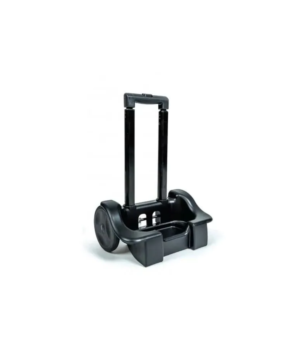 This cart offers a practical solution for moving compatible Inogen concentrators without carrying them by hand. The concentrator, housed in its carry bag, attaches securely to the cart, allowing smooth, hands-free transport. An adjustable handle supports comfortable use for different heights, reducing physical strain during daily activities and promoting mobility.