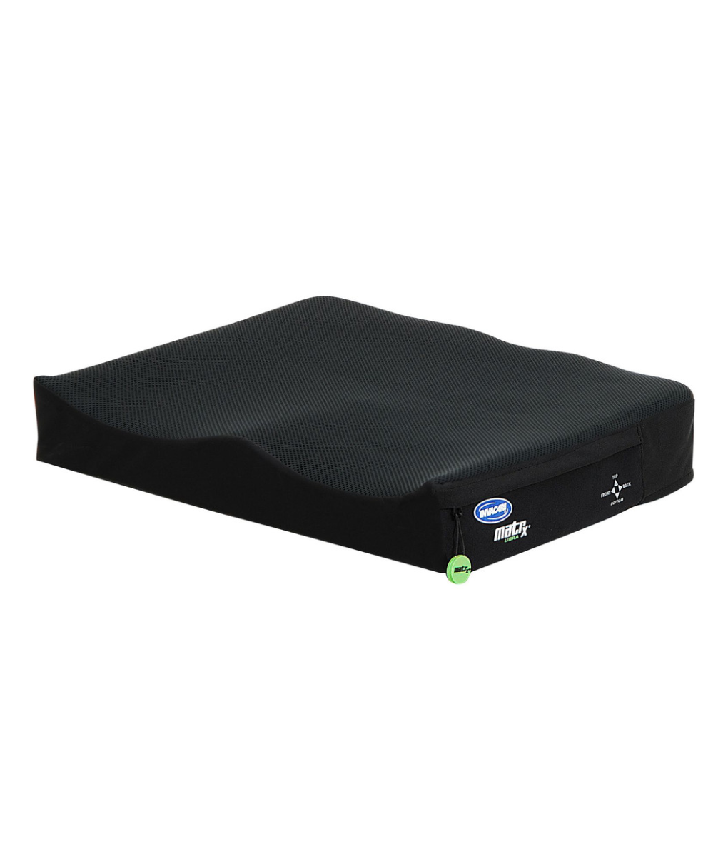 The Matrx Libra Cushion is designed for individuals at high risk of skin breakdown who need reliable pressure redistribution and postural alignment. Its anatomically contoured foam base includes lateral pelvic supports, a trochanteric shelf and an abductor/adductor contour to promote midline leg positioning and reduce shear forces.