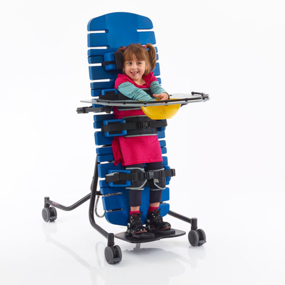 The stander is angle adjustable, from horizontal to vertical, enabling hoist transfers and easy set up before moving the child into a standing position. A wide range of accessories are available to ensure a highly customised stander to suit individual needs.