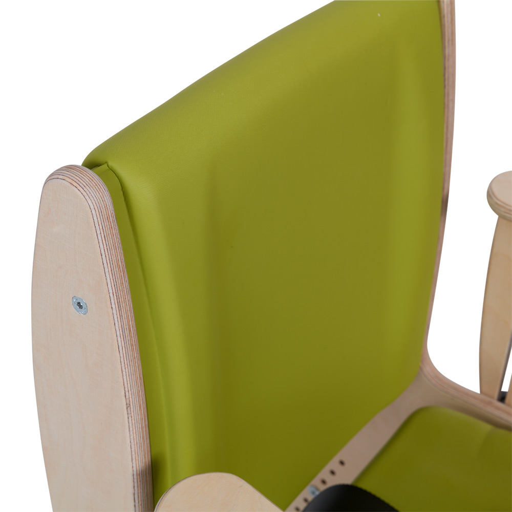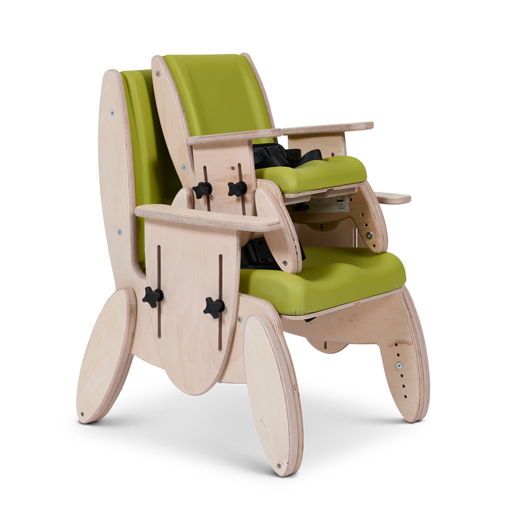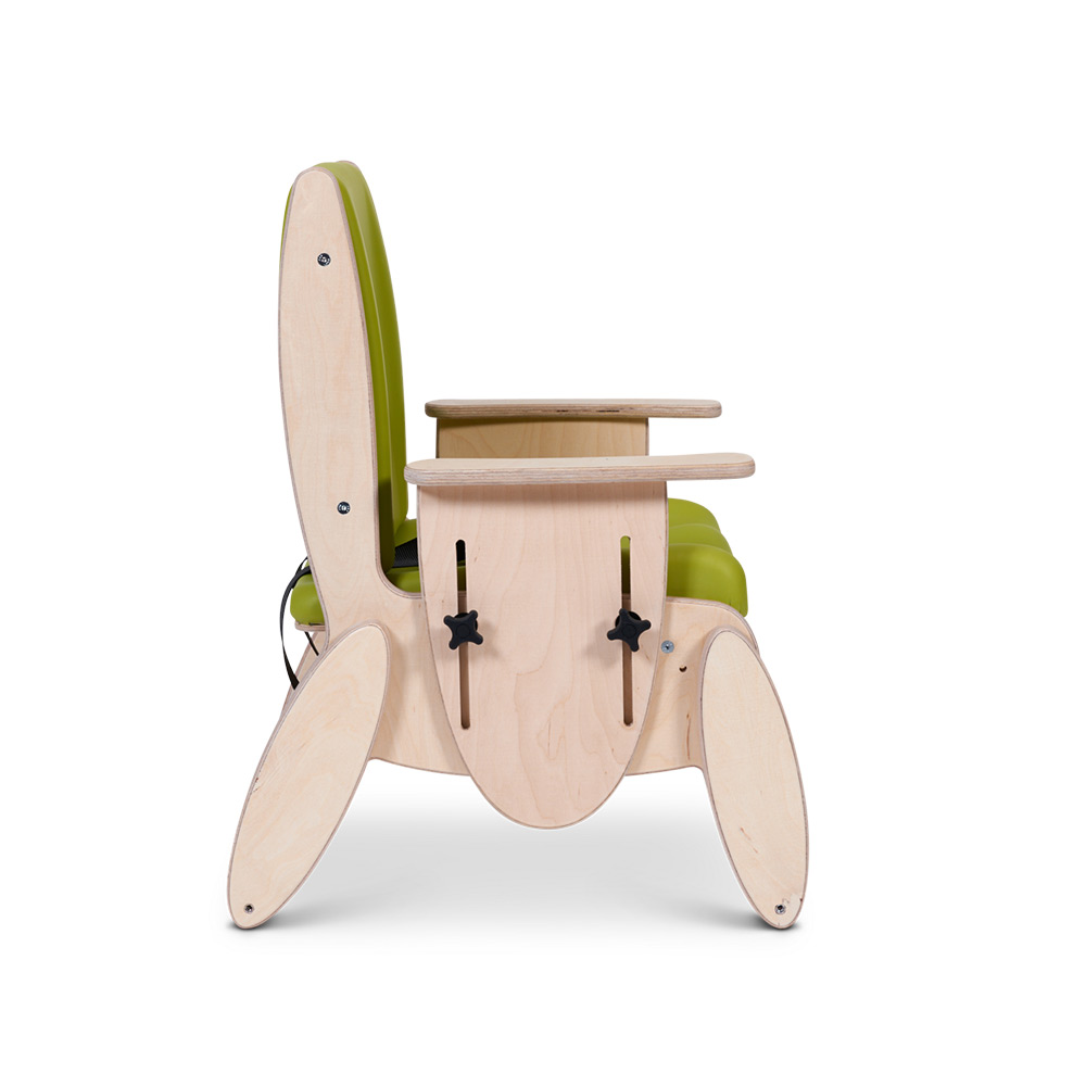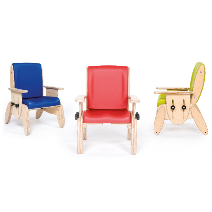 Four bright colour options are readily available (red, lime, blue, and black), with further choices offered by special order. The Juni is a popular choice for home, childcare, schools, and therapy settings.