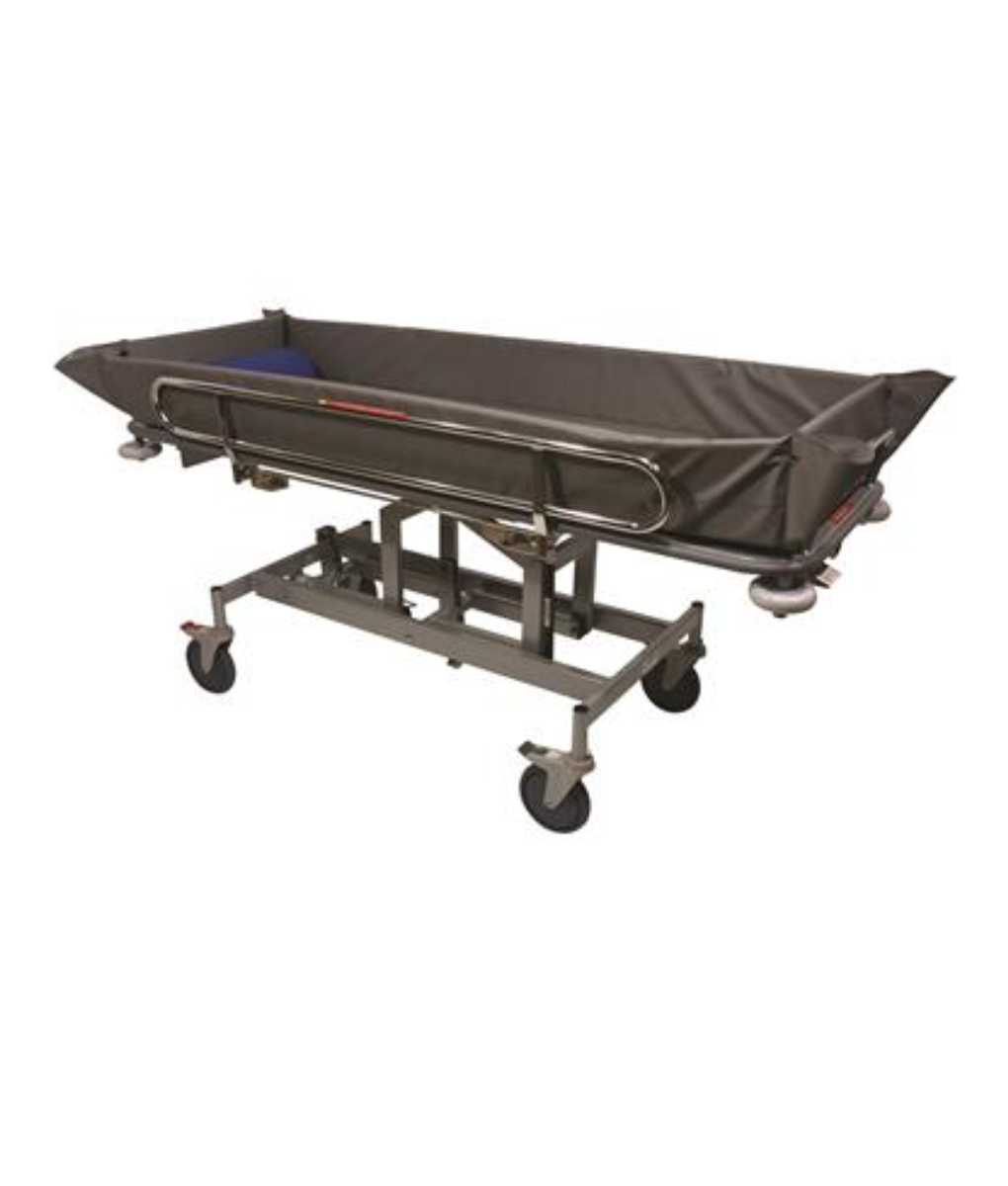 The Kerry Mobile Shower Trolley is a height-adjustable platform that enables safe and supported bathing while lying flat.
