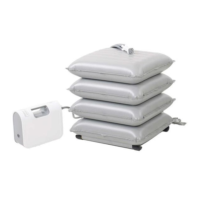 If someone falls over and they can shuffle on to the cushion or be rolled on from the recovery position and assisted to sit upright then the Elk can then be inflated at the touch of a button with someone supporting the individual from behind to bring them to a raise seated position ready to stand.