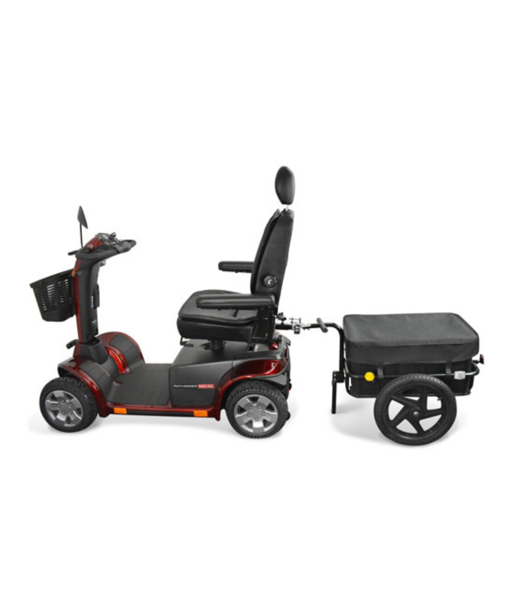 The Mobility Scooter Rear Trailer offers generous enclosed storage for larger or heavier items that don’t fit in standard baskets or bags. It connects easily to the scooter’s rear hitch and detaches just as simply when not in use.
