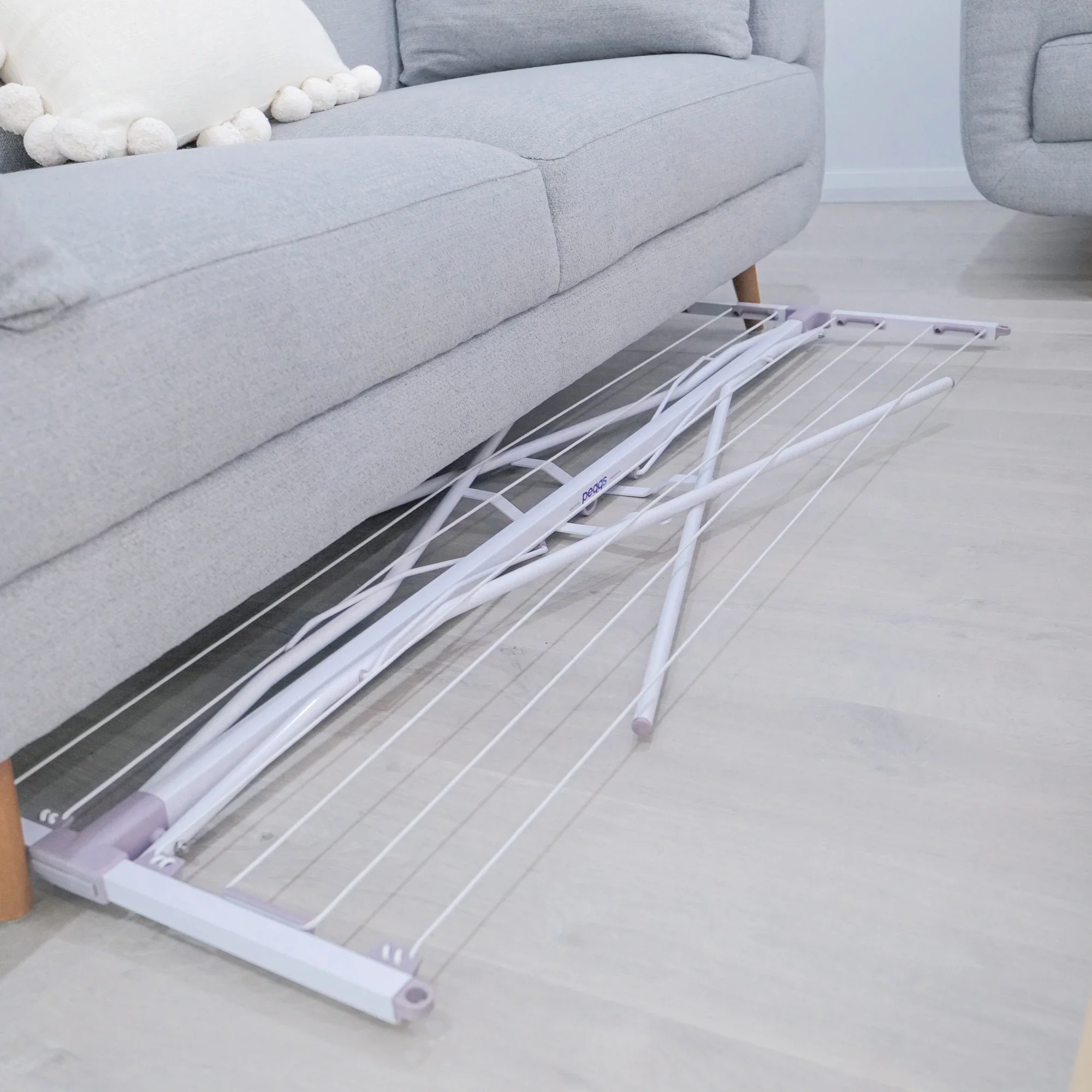 The Classic 8 Handy Line is a portable clothesline designed for efficient drying in a compact form. It arrives fully assembled and folds flat for convenient storage, making it ideal for apartments, patios or shared living spaces.