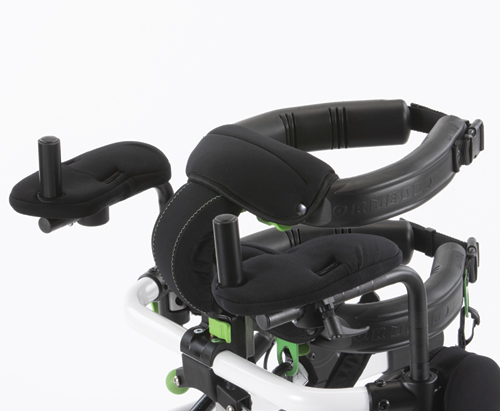 Height, depth and angle adjustable, the arm supports offer stability by providing proper posture for the child’s arms.