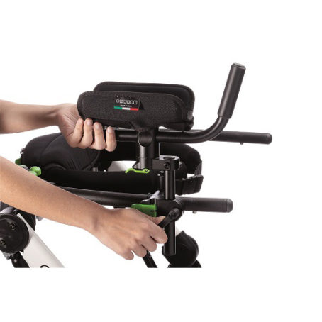 The Grillo is packed full of features and has a wide range of tool-free adjustments and supports that help make it easy to adapt to different needs of the child and accommodate growth. The patented gas spring operated height adjustment system allows for postural correction while the child is in situ – both in static and dynamic phase. A measurement bar allows for quick, easy and accurate adjustments.