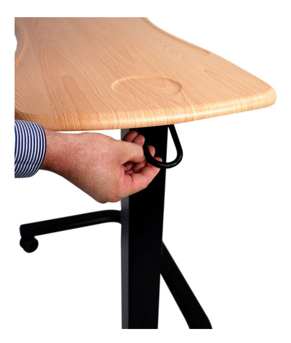 The tabletop height adjusts from 78.5 cm to 113.5 cm via a simple lever, allowing customisation to individual needs.