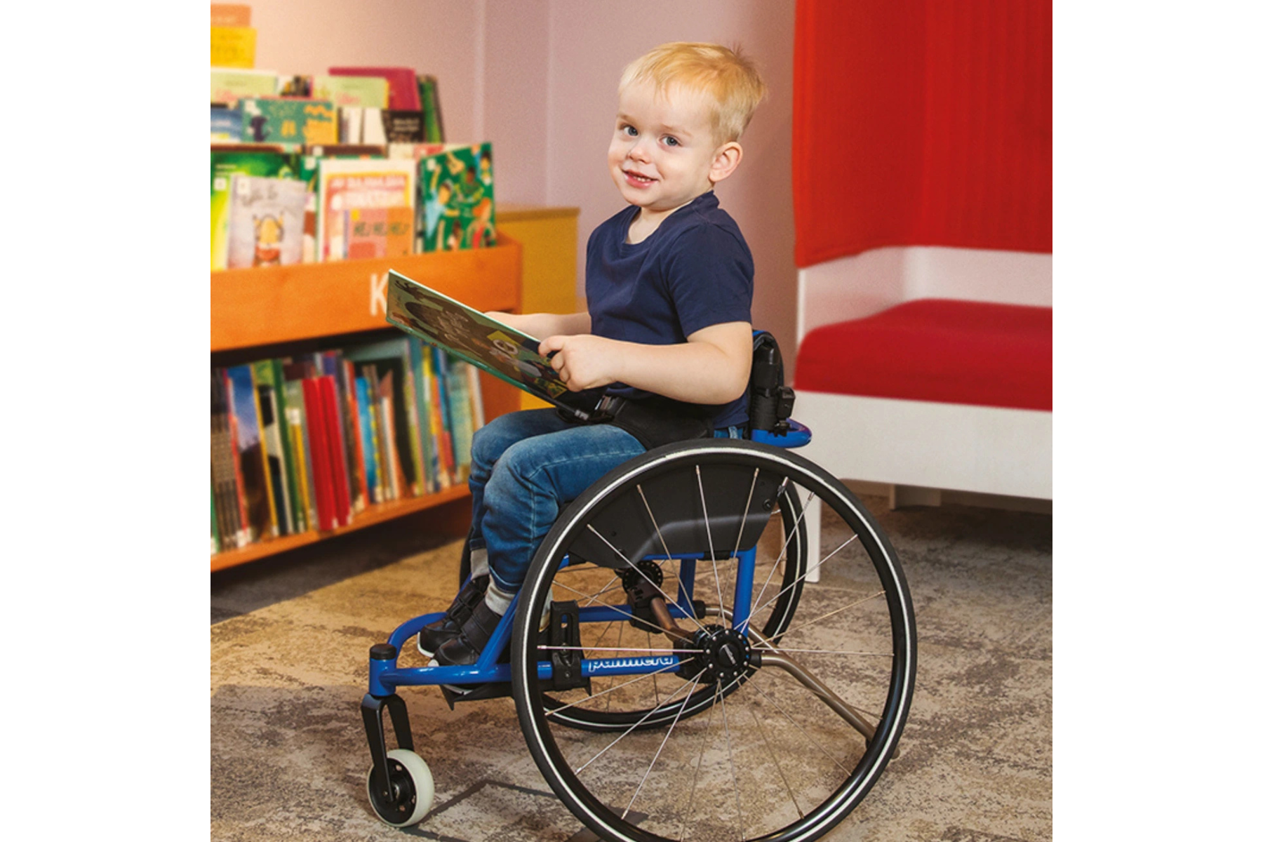 Adjustable components include backrest height and angle, footrest height, and seat balancing. A wide selection of accessories allows customisation to suit the child’s comfort and needs – including push handles, side guards and anti-roll devices for added safety during transfers.