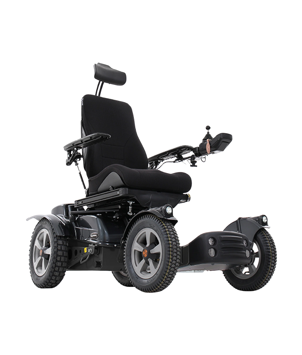 With a maximum speed of 15 km/h and a driving range of up to 45 km, the X850 is ideal for rural settings or active outdoor lifestyles. Despite its rugged design, it also features the Corpus® 3G seating system with powered tilt, recline and seat elevation for postural support and pressure care.