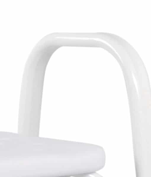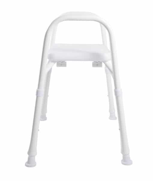 Fitted with an extra wide plastic seat, height-adjustable legs for personalised setup, and non-slip rubber tips ensure grip on wet surfaces. The stool’s sturdy build and wide seat make it a reliable choice for home or facility use.
