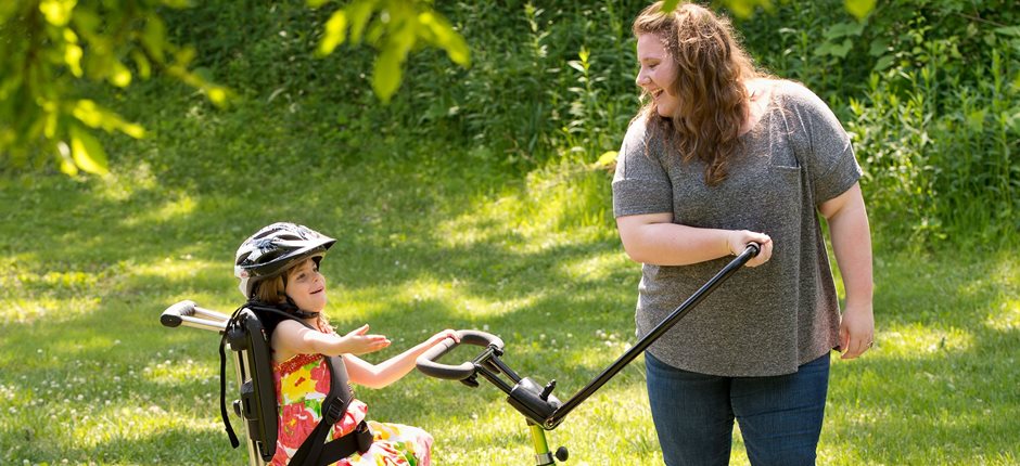 - Components such as the trunk support system, caregiver brake, and rear steering handle allow the tricycle to be tailored to the needs of your child or client.