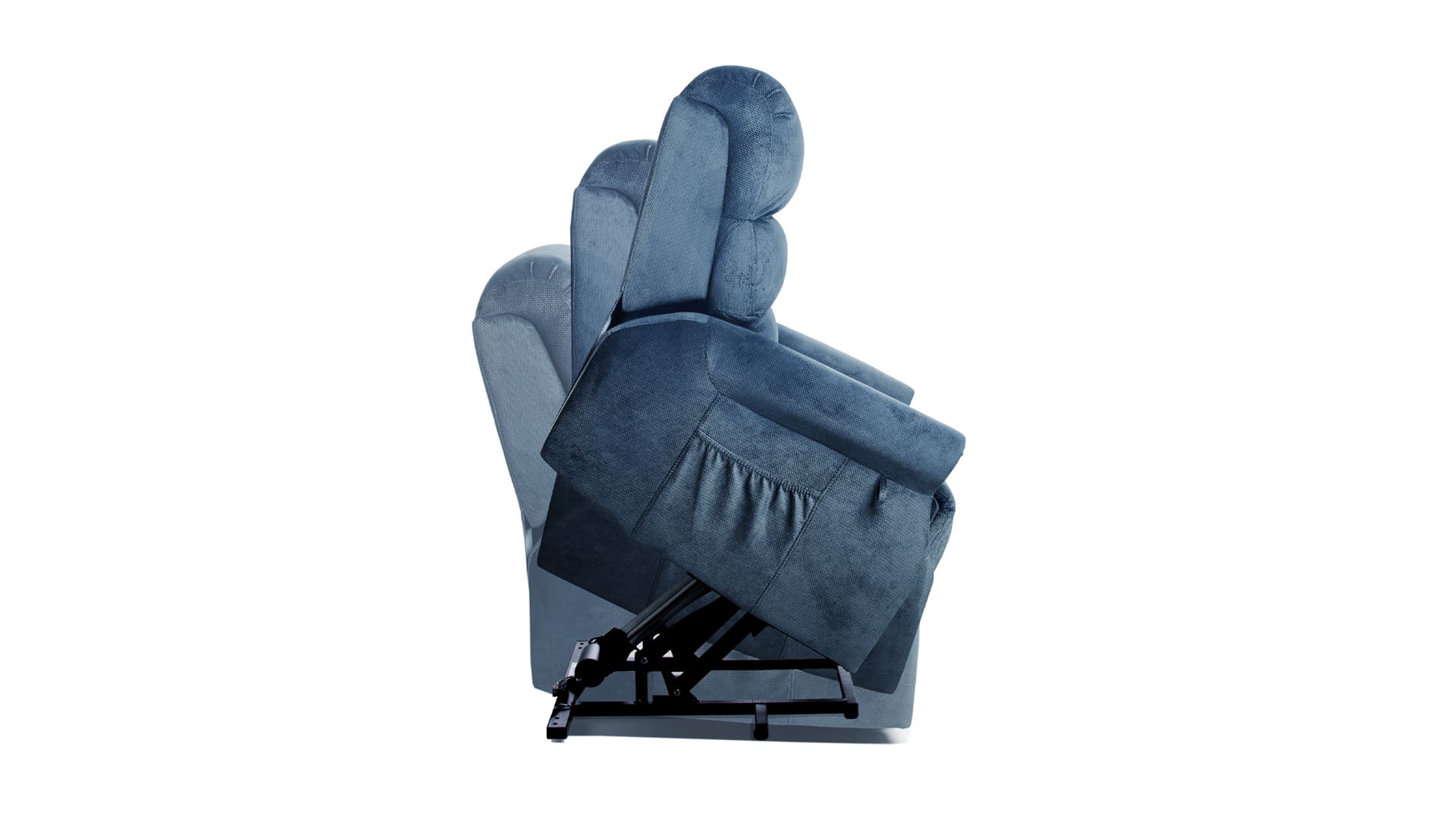 The three-section waterfall backrest offers comfortable support, while side pockets and a simple hand control enhance everyday functionality.
