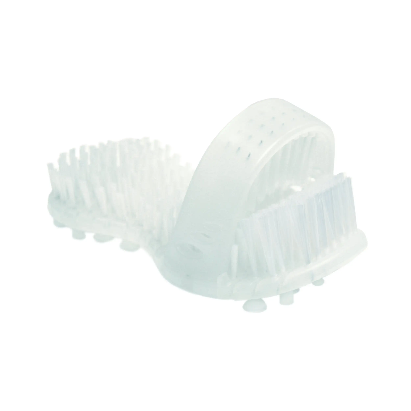 The Shower Sandal Foot Scrubber is designed for hands-free use while seated in the shower. Simply slide a foot into the sandal-shaped base, where hundreds of soft, flexible bristles clean between toes and along the sole.