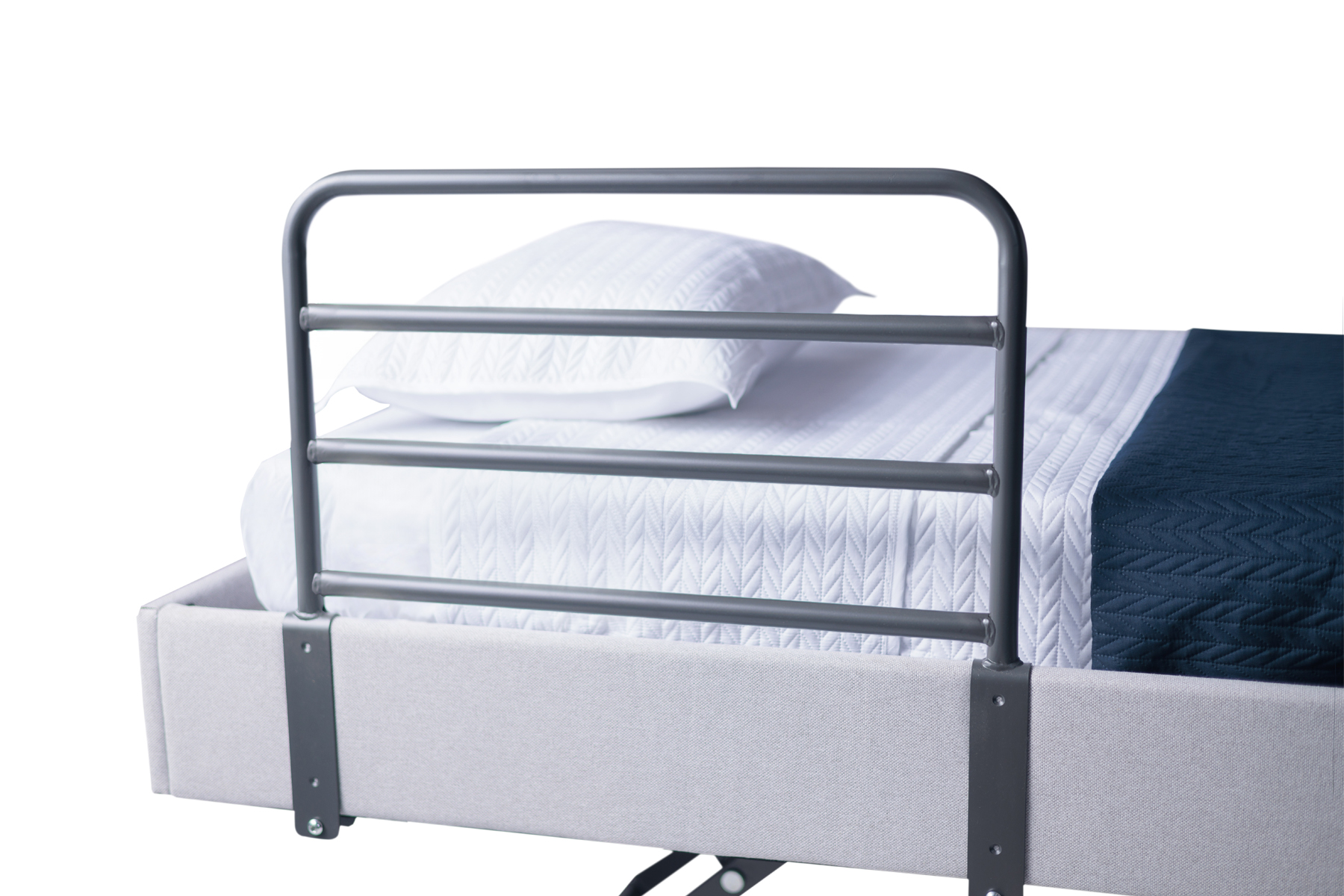 Its balanced profile allows for improved stability while still maintaining flexibility for carers. The rail attaches securely to either side of the bed surround, depending on individual needs or room layout, and installs easily without tools.