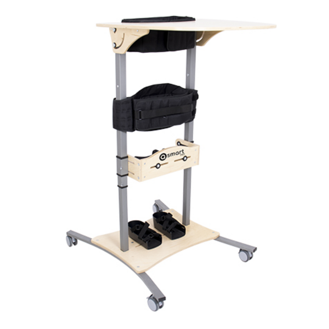 The Akces-Med Smart Pro Stander is an upright standing frame that supports safe and comfortable vertical positioning for children with conditions such as cerebral palsy, spinal injuries or degenerative disorders. Its durable steel and timber construction is designed for daily use in both home and therapy settings.
