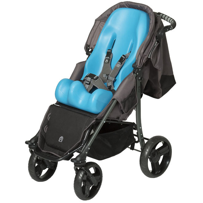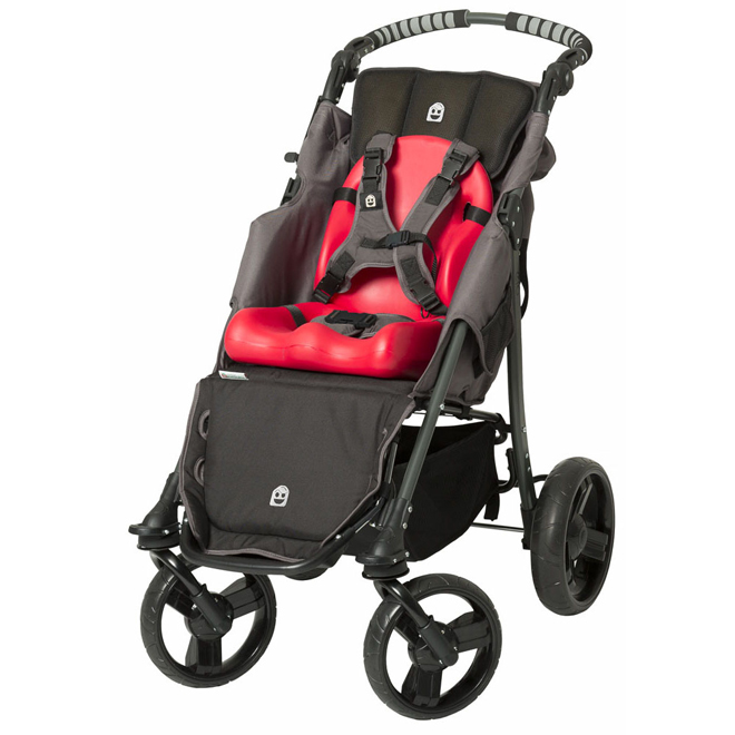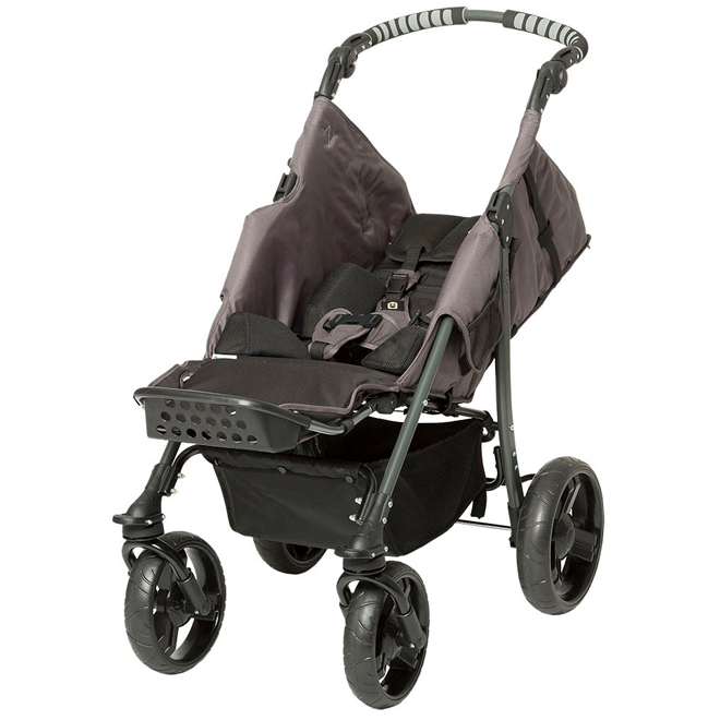 The 3 point hip belt and chest harness with chest strap have a comfort cover while providing secure positioning. It’s ready to go with suncanopy, underseat basket also standard accessories. For children who need to sleep while on the go, the backrest reclines 75 degrees.The stroller is easy to fold and features a lightweight aluminium frame. A raincover is also available. The size 1 and 2 Special Tomato Sitters and Seat Liners can be also be used in the stroller to provide extra postural support.