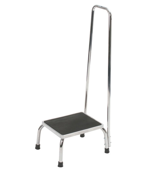 Constructed from chrome-plated steel, the stool is designed for durability and everyday use. The large textured step surface and rubber-tipped feet provide extra traction and help protect flooring. Its compact footprint fits easily into most home or care environments.