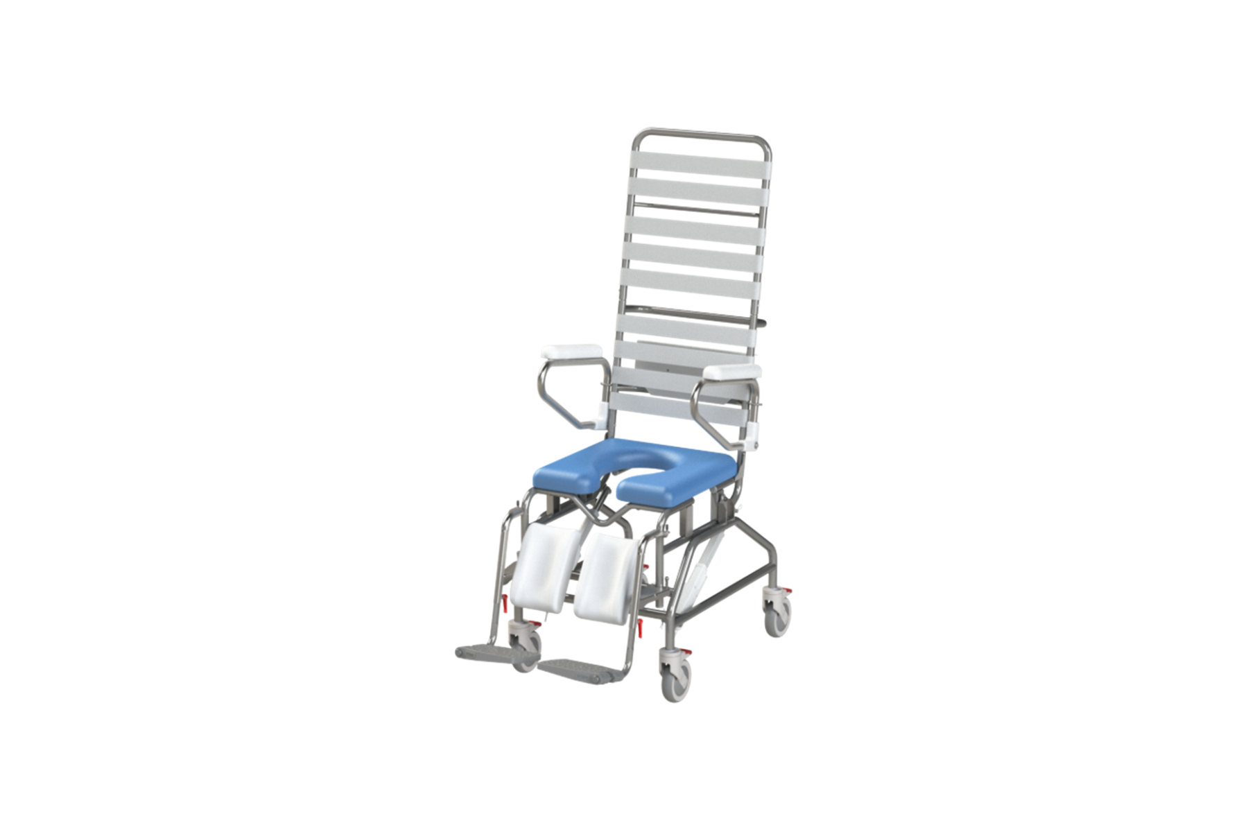 Lockable castors ensure stability, and the integrated push handle allows carer-assisted movement.