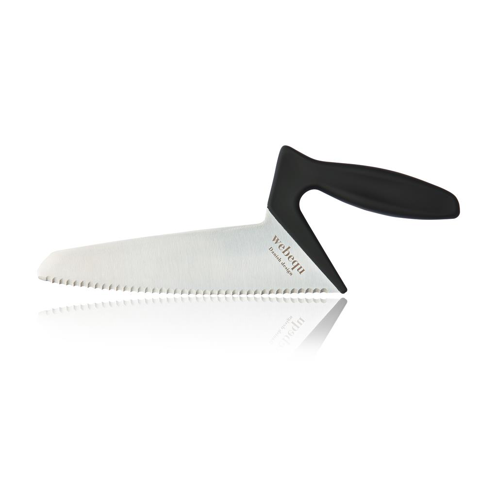 The Webequ Bread Knife makes slicing crusty bread easier for those with limited strength or joint pain. Its 22.2 cm stainless steel serrated blade works with a soft-touch, anti-slip handle that sits at a neutral angle to the wrist.