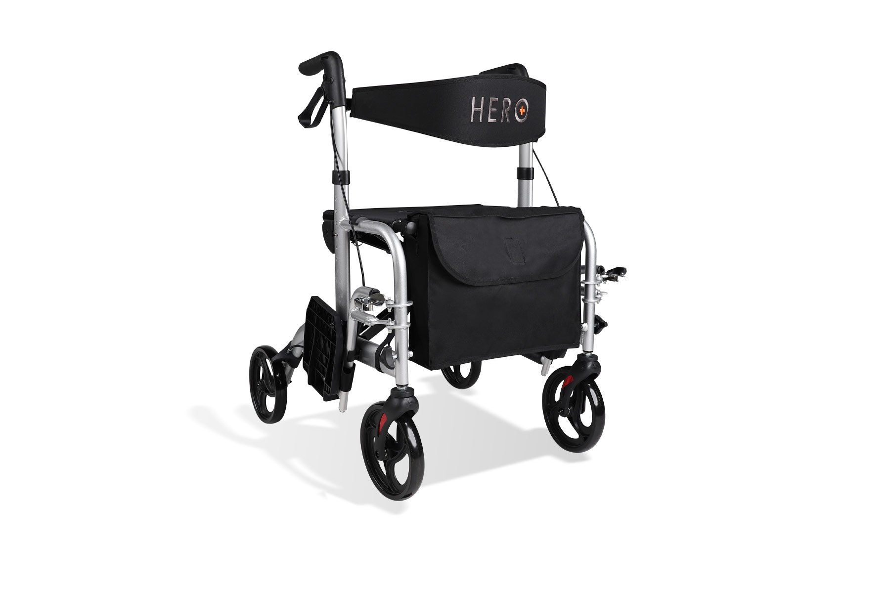 The Hero Medical 2-in-1 Seat Walker/Wheelchair is a practical mobility solution that functions both as a seat walker and a transit wheelchair. It allows individuals to walk with support or be pushed when fatigued, offering flexible use throughout the day.