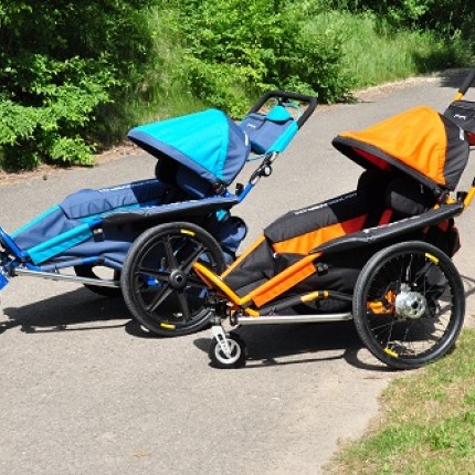 - Front wheel: 14″ jogging. Rear Wheel: 20″.
