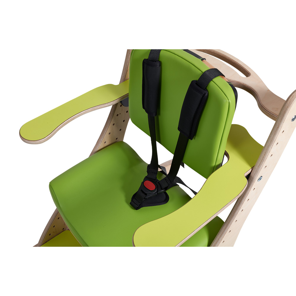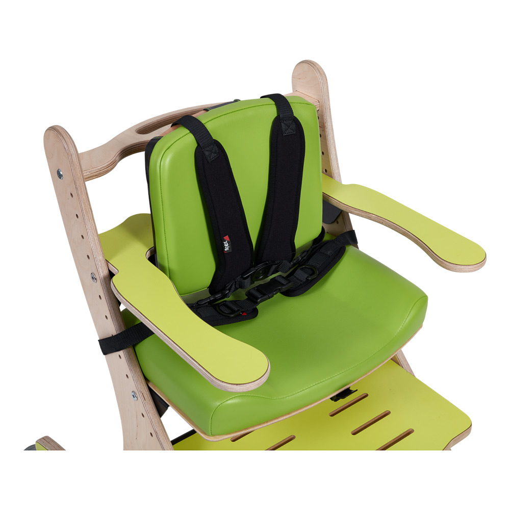Complete with a high padded back, armrests, quick release tray, five-point harness, mild contoured padded seat, slotted footrest and mobile skis, the Zoomi Plus offers the ideal solution for children who require a little extra postural support.